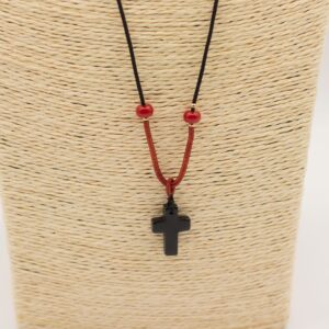 Collier cordon avec pendentif en pierres précieuses – Croix d’agate noire
