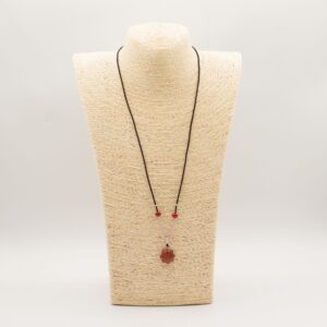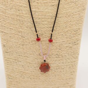 Collier en corde avec pendentif en pierre précieuse – Visage solaire en cornaline
