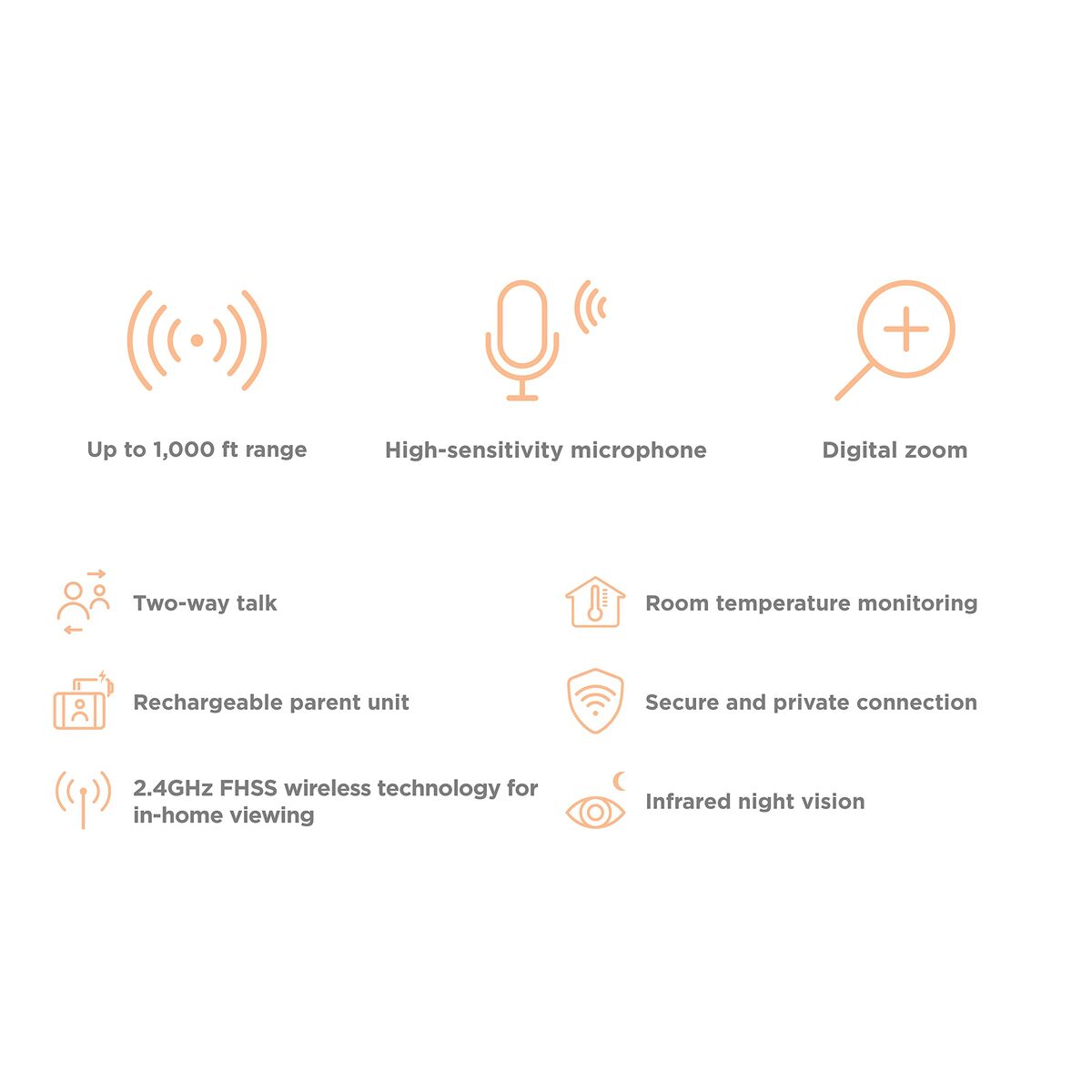 Le Vigilabébé Motorola VM483 est un vigilabébé avancé conçu pour offrir tranquillité d’esprit et contrôle total aux parents grâce à une intégration soignée des fonctions essentielles. Doté d’un écran couleur de 2,8 pouces, il permet une visualisation nette et claire de bébé, complétée par un zoom numérique à distance pour un suivi précis. Sa caméra avec vision nocturne infrarouge assure une surveillance continue même en faible luminosité, facilitant la supervision nocturne sans entrer dans la chambre. Il renforce la sécurité grâce à la technologie sans fil 2,4 GHz FHSS et au cryptage sécurisé des données, offrant une connexion stable et protégée jusqu’à 300 mètres de portée, garantissant ainsi une liberté de mouvement dans la maison. Il intègre un microphone haute sensibilité et des haut-parleurs intégrés pour une communication bidirectionnelle, permettant d’écouter et de parler à bébé à tout moment. Parmi ses fonctions principales figurent le contrôle du volume, l’indicateur visuel du niveau sonore et le mode ECO pour optimiser la consommation d’énergie. Il surveille également la température ambiante de la pièce, aidant à maintenir des conditions optimales pour le confort de bébé. Le Motorola VM483 propose aussi des berceuses préinstallées, idéales pour apaiser et faciliter l’endormissement, et un design en blanc discret adapté à tout intérieur. Fabriqué en Chine, ce modèle répond aux normes actuelles de sécurité et de fonctionnalité pour la puériculture, constituant un outil pratique et fiable pour veiller au bien-être de bébé jour et nuit.
