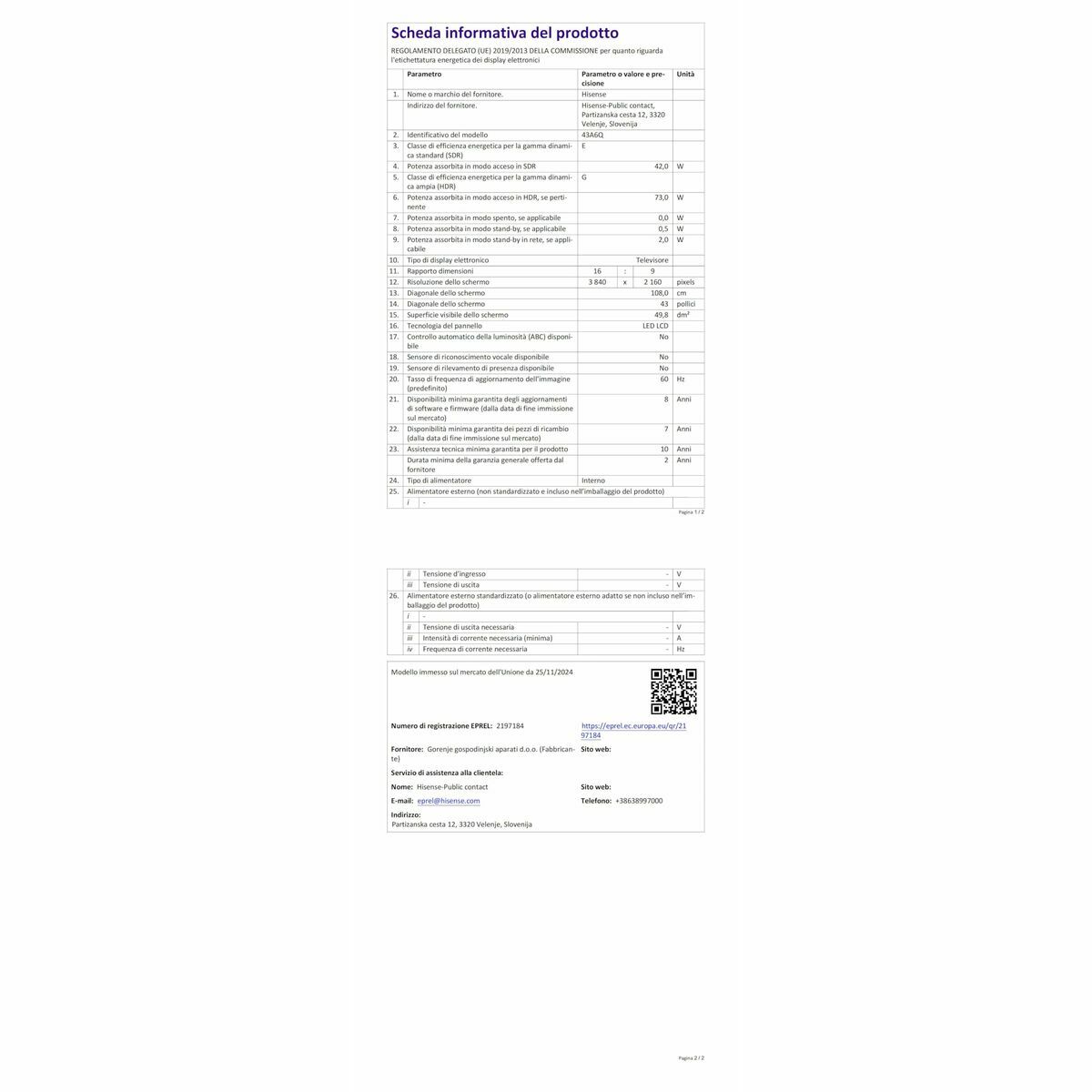 Le Smart TV 43″ Hisense 43A6Q est une solution polyvalente offrant une expérience audiovisuelle avancée dans un format compact, idéale pour salons, chambres ou espaces multifonctions. Il dispose d’un écran de 43 pouces en noir élégant, offrant des images réalistes grâce à sa résolution 4K Ultra HD, où chaque détail prend vie avec netteté et couleurs éclatantes. Il intègre la plateforme Smart TV basée sur VIDAA, permettant un accès intuitif aux applications de streaming, navigation web, services à la demande et contenus interactifs, élargissant considérablement les possibilités de divertissement. Des technologies d’image avancées comme Dolby Vision optimisent le contraste et la profondeur des tons pour une expérience plus immersive, tandis que le Mode Jeu Plus est conçu pour offrir une faible latence et une grande fluidité lors des sessions de jeu, idéal pour les amateurs recherchant une réactivité optimale à l’écran. Le système audio comprend DTS Virtual:X, procurant des effets sonores immersifs et une présence accrue sans équipement supplémentaire, pour une sensation home cinéma complète. Le contrôle vocal facilite la gestion du téléviseur et la recherche de contenus via des commandes simples, optimisant l’accessibilité et le confort d’utilisation. Son tuner numérique multidynamique est compatible avec DVB-C, DVB-S, DVB-S2, DVB-T et DVB-T2, assurant la réception de la plupart des diffusions européennes, et propose des fonctions supplémentaires telles que guide électronique des programmes (EPG), télétexte et égaliseur audio pour personnaliser l’expérience selon chaque utilisateur. Avec sa classe énergétique E, ce modèle allie performances et consommation maîtrisée, se positionnant comme un choix fonctionnel et moderne pour ceux qui recherchent qualité d’image, connectivité et simplicité d’utilisation dans le segment des téléviseurs intelligents.